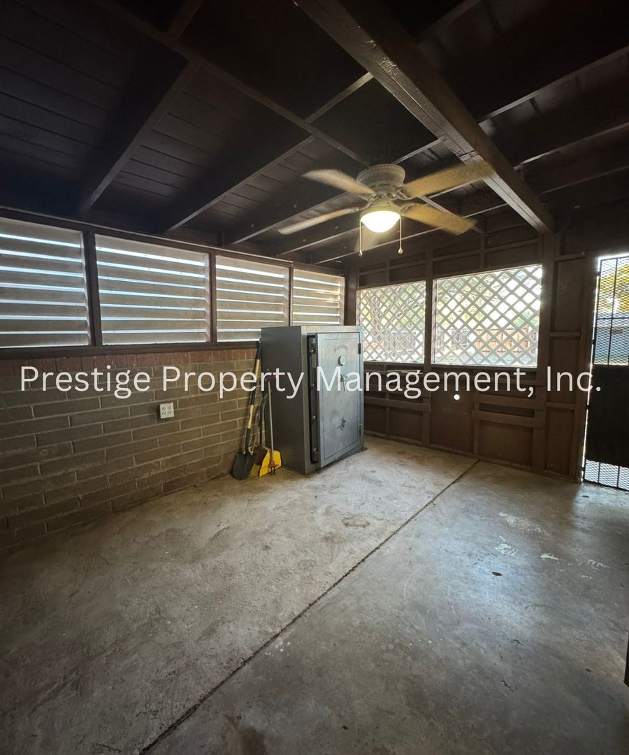Welcome to this charming 4-bedroom, 2.5-bathroom home located in the vibrant city of Tucson, AZ. This property boasts a large fenced yard, perfect for outdoor activities or simply enjoying the beautiful Arizona weather. The home is equipped with a central air conditioning system to keep you comfortable all year round. The property also features a storage garage in the back, a one-car carport, and additional covered parking on the side, providing space for your vehicles and storage needs. You will also find a dedicated storage room complete with a safe. This home seamlessly combines comfort and convenience, making it a perfect choice, call to see how you can make this house your home!